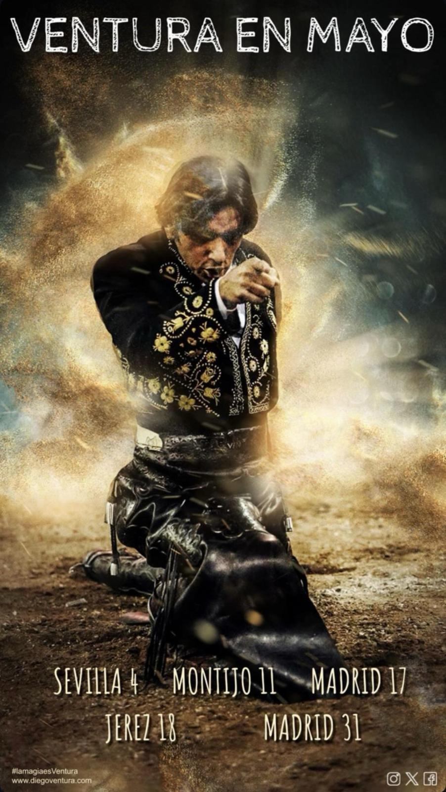 Maio é o mês da intensidade e da glória para Diego Ventura. O mais internacional dos cavaleiros prepara-se para pisar as arenas mais prestigiadas do mundo taurino: Sevilha, Jerez de la Frontera e duas datas marcantes em Madrid — a capital do toureio mundial. E no meio dessa rota de exigência e consagração, há uma paragem que nos enche de orgulho: Montijo, no dia 11 de Maio.